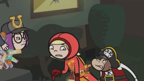 Not satisfied with a mountain of candy that's nearly buries the freaking house, Tobey orders his robots to go back to town and steal even more candy because he will not rest until he has every last piece of candy in this doomed burg. Geez, kid. Just quit while WordGirl still isn't on to your scheme.You already have enough candy to kill the world's supply of diabetics. Just eat your stolen candy and be satisfied with what you have.